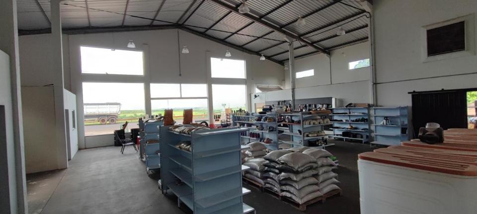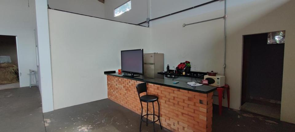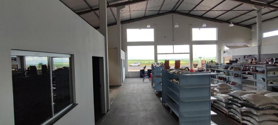 Galpão com área para estoque, dois escritórios e banheiro masculino e feminino, além de cozinha. Área em comodato a mais de 30 anos